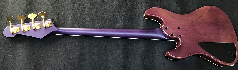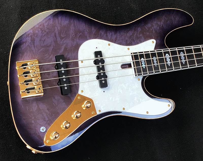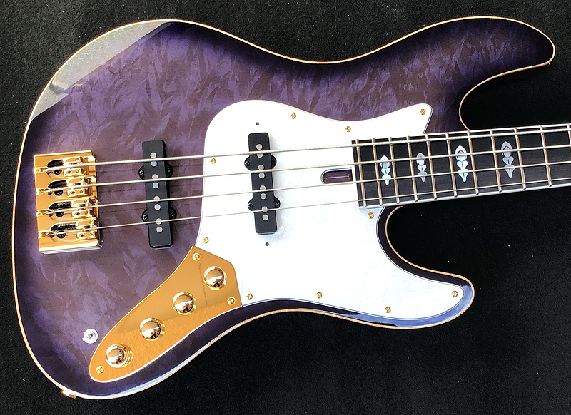 ボディトップ材は、栃の木のキルティッド材を使用。ナチュラルパインディグのボディとセルバインディングされたネック。